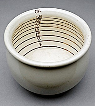 British 18th century bleeding bowl: Bloodletting was once used to treat just about every illness. This bowl has a scale marked in fluid ounces to measure how much blood had been let out of the patient. And as British barbers were once also surgeons, the running blood was marked by their red-striped poles