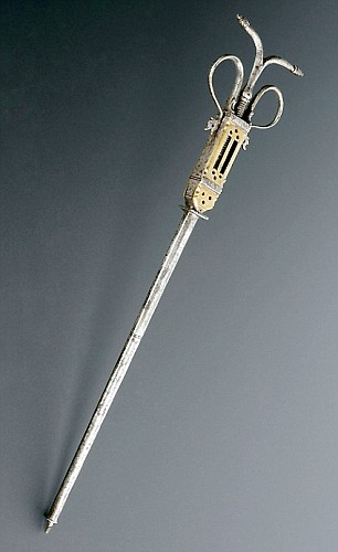 Special instruments for removing bullets came into use in the early 1500s as firearms became more sophisticated. Extractors like this one have a hollow rod which contains a screw that can be lengthened or shortened by turning the handles to remove the bullet