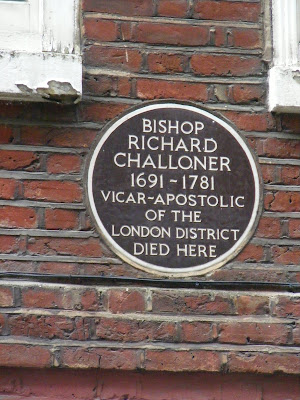 At No. 44 we find a plaque which notes that Bishop Richard Challoner lived and died here. He was a prominent catholic who produced a revised edition of the Bible and a catholic prayer book. At the time of the riots he was nearly 90 years old. He managed to escape from his home before the mob arrived taking refuge in Finchley, north London, although at that time a rural area. When the riots died down he returned home but he never really recovered from the shock of having to escape and he died shortly thereafter.