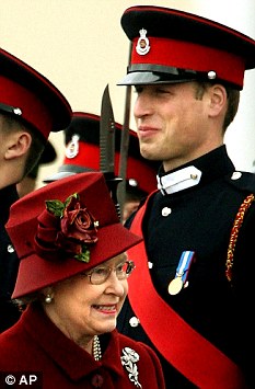 Proud: The Queen and William as she inspects Sandhurst graduates in 2006