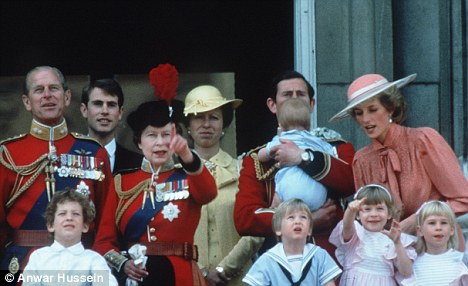 1985: William (front centre) at Trooping of the Colour with his mother Diana