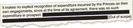 One blacked-out line states that ‘the Princes [William and Harry] will increasingly incur expenditure when undertaking engagements on behalf of The Queen’.