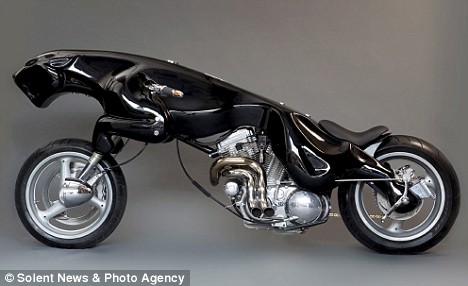 Pictured: The ultimate PURRING machine - a motorbike in the form of the pouncing Jaguar logo