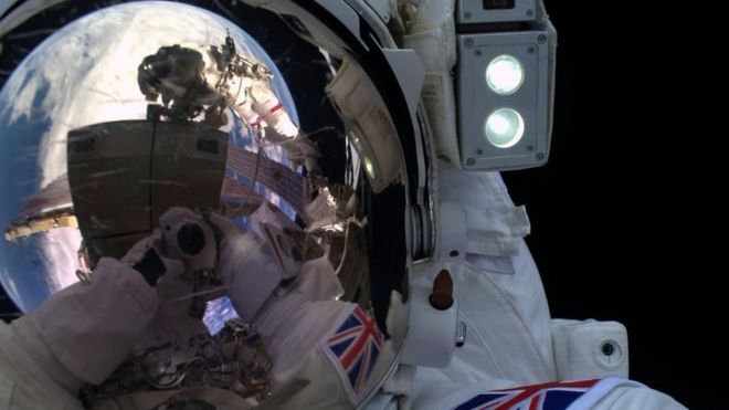 By the way, Britain's first spacewalk was in 1995, when Lincolnshire-born Michael Foale did one. However, he had dual British-American citizenship and was working with Nasa, so is not considered an actual British astronaut. No Canadian did a spacewalk into Chris Hadfield in 2001.