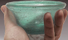Treasures: a gold and glass pendant (above) and a glass bowl