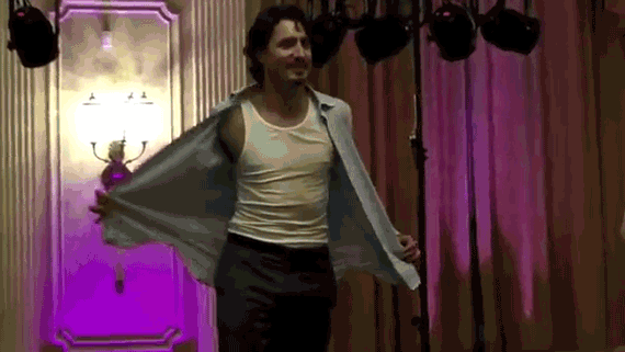 Just look at him against that desk. Rappers lean with less swag. His fitted suit is a crisp middle finger to whoever’s tailoring Trump. And that gaze – half invite to a night on the town, half admission that it’s past his bed time.