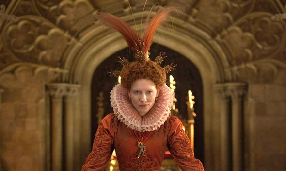 Queen Elizabeth I with Sir Francis pictured in 1586 and Cate Blanchett as the Queen