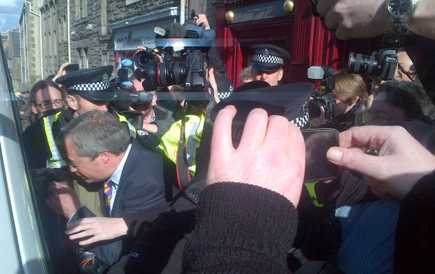 Whilst Farage is greeted as a hero in many parts of England, this is the nasty reception which greeted him in the Scottish capital yesterday: