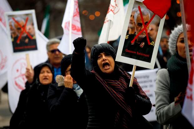 A few dozen Iranian-Canadians gather in Toronto on Friday to celebrate the death of a top Iranian general in Iraq in Toronto, Jan. 3, 2020. Gen. Qassem Soleimani was the head of Iran's elite Quds Force, and was killed in Baghdad, Iraq, late Thursday.​