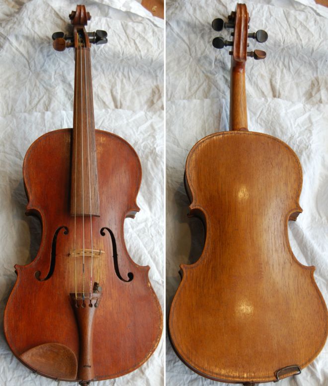 He said it was possible the violin body was made from a type of mahogany, with a packing material similar to a tea chest also used.