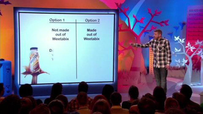 You should watch "Dave Gorman's Modern Life is Goodish", one of the big programmes on Dave, a unique stand-up show in which, in each episode, Dave Gorman takes a hilarious look at modern life using PowerPoint.