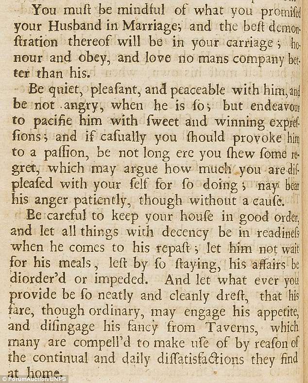 Women were told to 'keep your house in good order' and that it was their 'duty to hide your husband's faults'.