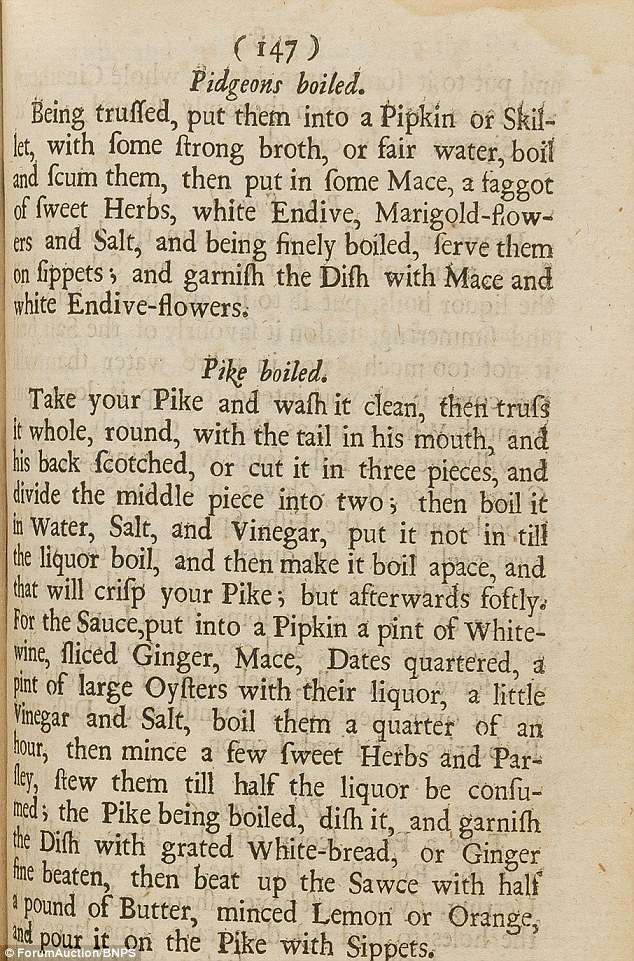 Among the life advice is recipes for popular dishes at the time including boiled pike and pigeons