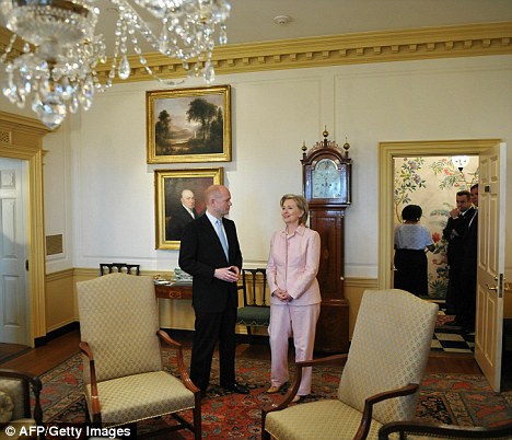 Mrs Clinton greeted Mr Hague with the words: 'I'm very pleased to see you again' - the two have known each other since 2007 when Mr Hague met the former First Lady when she began her failed presidential campaign.