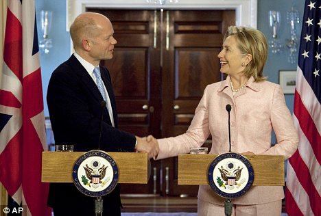New start: US Secretary of State Hillary Clinton and British Foreign Secretary William Hague at the State Department in Washington