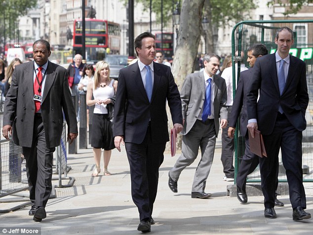 Just days after he worried police by getting rid of his motorbike outriders, Mr Cameron took to Whitehall with just a couple of bodyguards for protection.