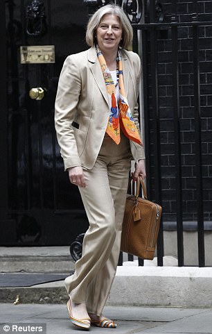 Statements: Home Secretary Theresa May at Number 10 and, right, David Cameron's advisor Camila Batmanghelidjh arriving at Westminster