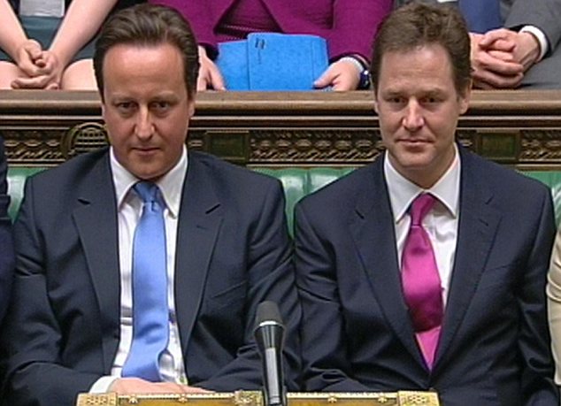 Mr Cameron and Nick Clegg sat side-by-side as the new coalition Government took its place in the House of Commons for the first time.