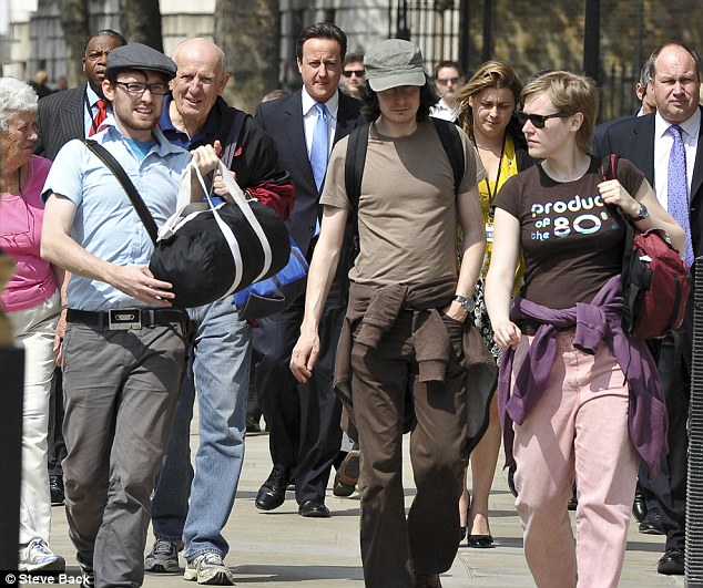 Who needs an armoured limo? David Cameron strolls down Whitehall to take his seat in Parliament as Prime Minister