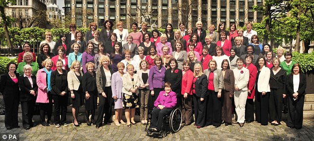 Girl power: Acting Labour leader Harriet Harman with female Labour MPs outside Parliament yesterday