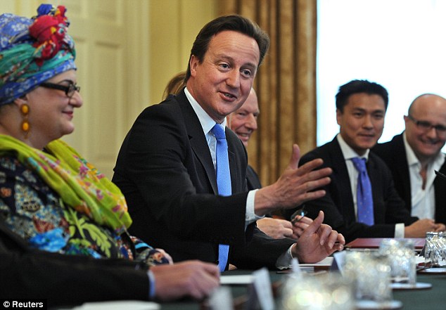 Down to business: Mr Cameron chairs the 'Big Society' meeting next to Kids Company charity founder Camila Batmanghelidjh in the Cabinet room of 10 Downing Street yesterday