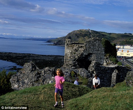 History: Children play in the ruins at Aberystwyth's windswept coast