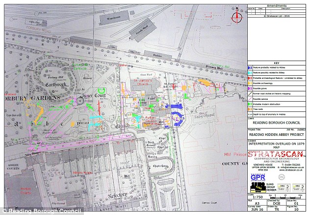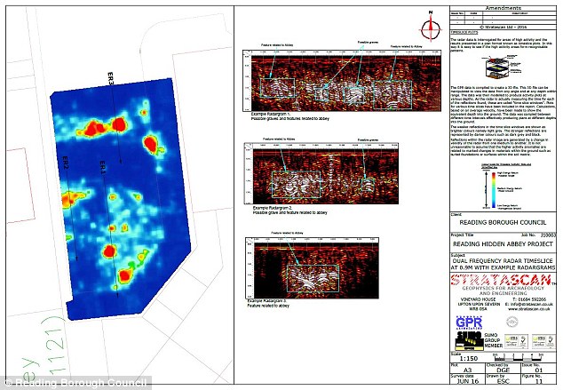 The investigation with ground-penetrating radar at Reading Abbey (pictured) established the site's layout and any potential coffin sites. This will be followed by test trenches to look at their archaeological potential