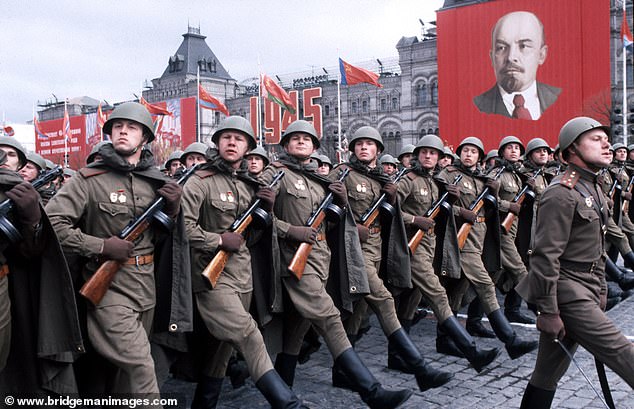 Soviet soldiers march through the Red Square, Moscow, on the May Day parade. Today’s European Union mishandled Russia after 1989 collapse of the Soviet Union and paved the way for the reign of Vladimir Putin