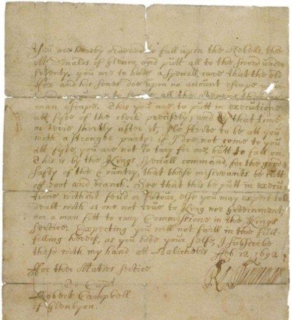 The signed order for the Massacre of Glencoe led to one of the darkest episodes in Scottish history.