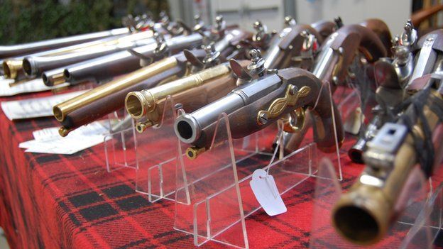 Guns capable of shooting require a shotgun licence and there are strict rules around storing black powder